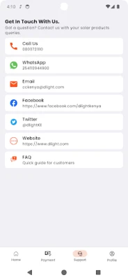 1. Check your last five tokens. 2. Check your account balance. 3. Check your payment progress 4. View your current d.light product 5. Manage more than one d.light product.